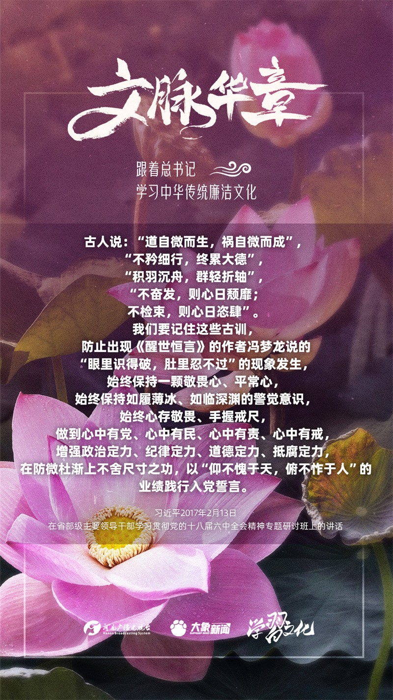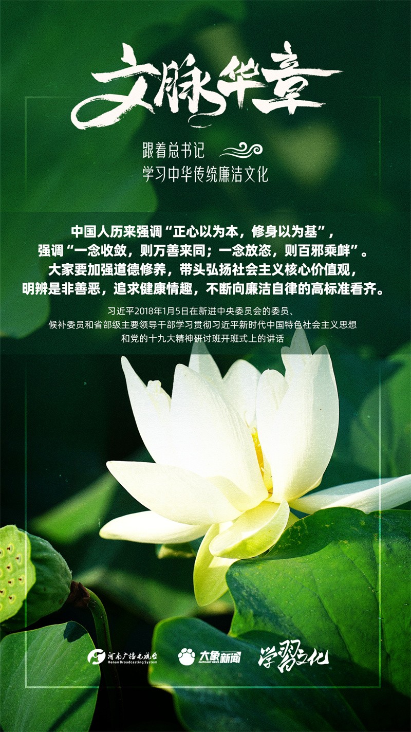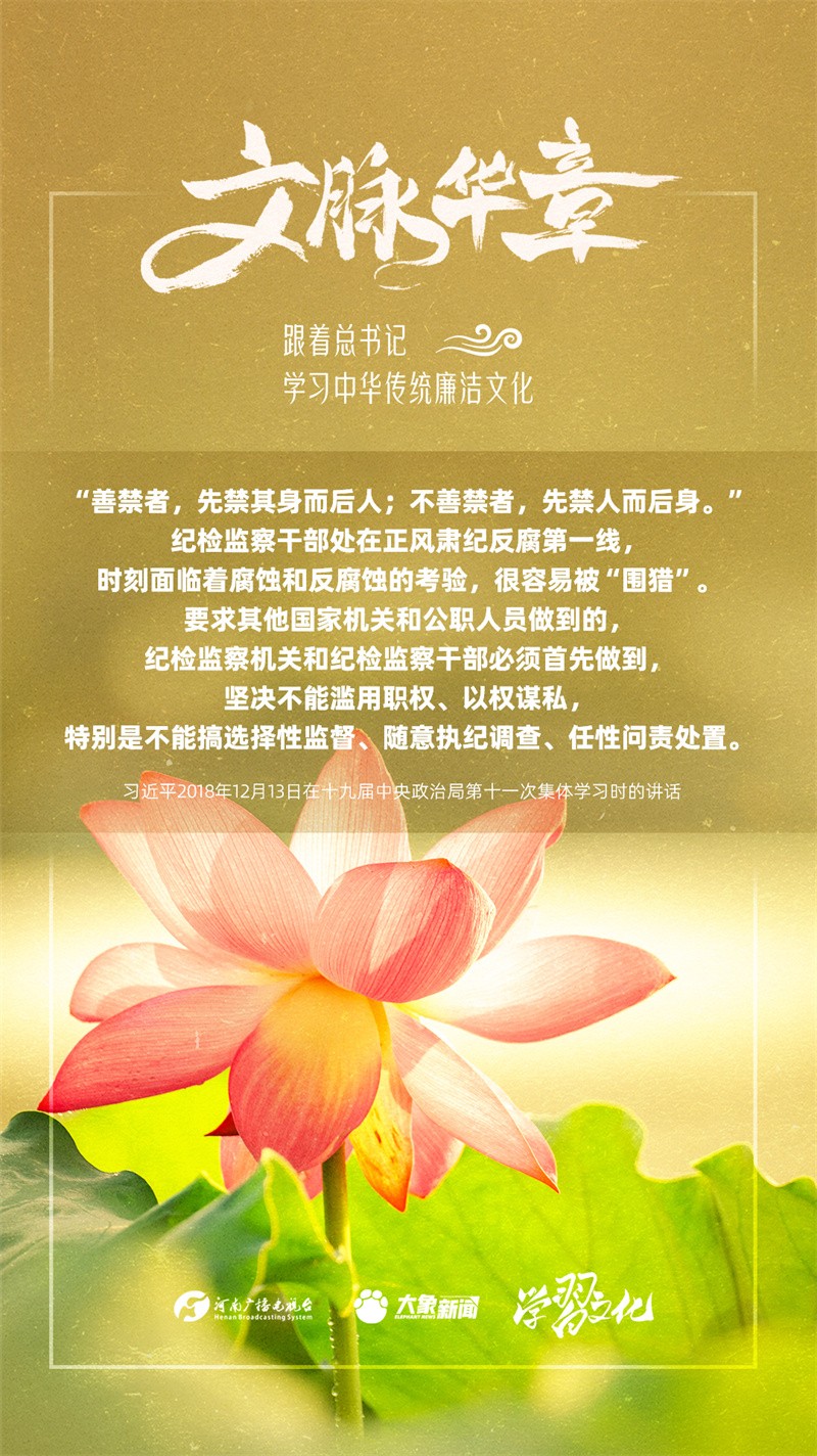 中華優秀傳統文化蘊含著豐富的廉潔文化,習近平總書記曾指出:沒有中華優秀傳統文化、革命文化、社會主義先進文化的底蘊和滋養,信仰信念就難以深沉而執著??倳洺3R洆?,教育引導廣大黨員干部正心修身,涵養文化,守住為政之本。讓我們一起跟著總書記學習中華傳統廉潔文化。今天推出第三期。