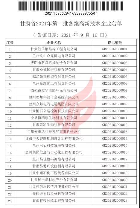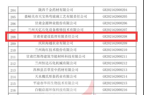 根據《高新技術企業認定管理辦法》和《高新技術企業認定管理工作指引》有關規定,全國高新技術企業認定管理工作領導小組辦公室于10月26日正式公布了甘肅省2021年第一批備案的294家高新技術企業名單,建設監理公司榜上有名,被評定為“高新技術企業”