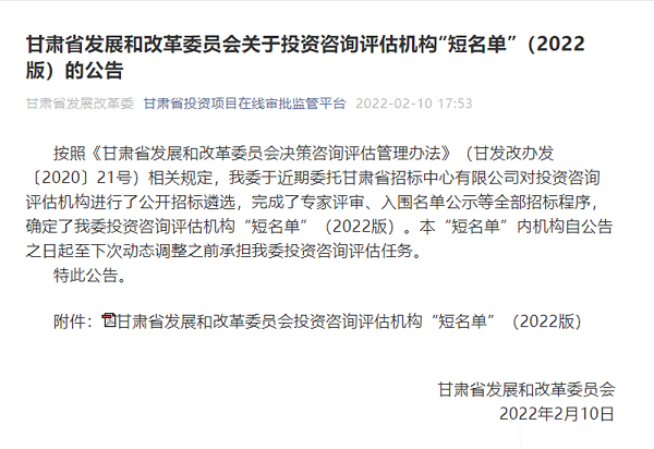 成功入圍省發改委三個行業板塊投資咨詢評估機構“短名單”