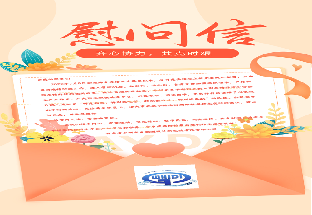 同時,注重加強人文關(guān)懷。水電設(shè)計院黨委對集中隔離的員工進(jìn)行了一對一電話連線慰問,并向全體員工致信,對堅守一線員工、志愿者和居家辦公人員給予鼓勵,鼓舞大家消除不安緊張情緒,提振精神、鼓舞士氣,動員廣大員工積極配合和參與疫情防控,及時做好心理疏導(dǎo),保證員工隊伍情緒穩(wěn)定。