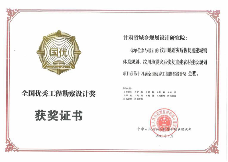 第十四屆全國優(yōu)秀勘察設(shè)計(jì)獎(jiǎng)金獎(jiǎng)